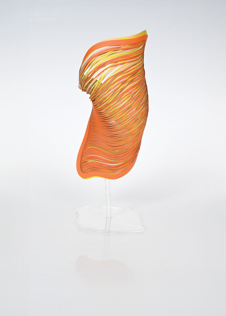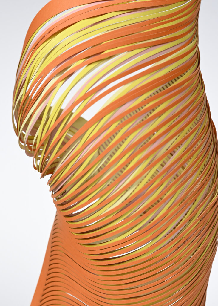 HANSJE VAN HALEMEen ruimtelijk zelfportret van Hansje van Halem, geïnspireerd op haar kleurrijke lijnenwerk.Gemaakt door middel van lagen van gekleurd papier.