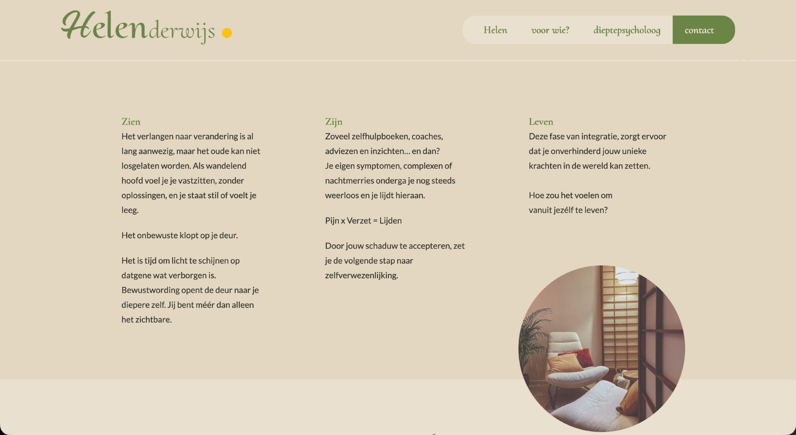 De uitgangspunten waren rust, vertrouwen en warmte. de vormgeving moest een open en persoonlijke uitstraling hebben, waarin cliënten zich veilig voelen om dieper te gaan.